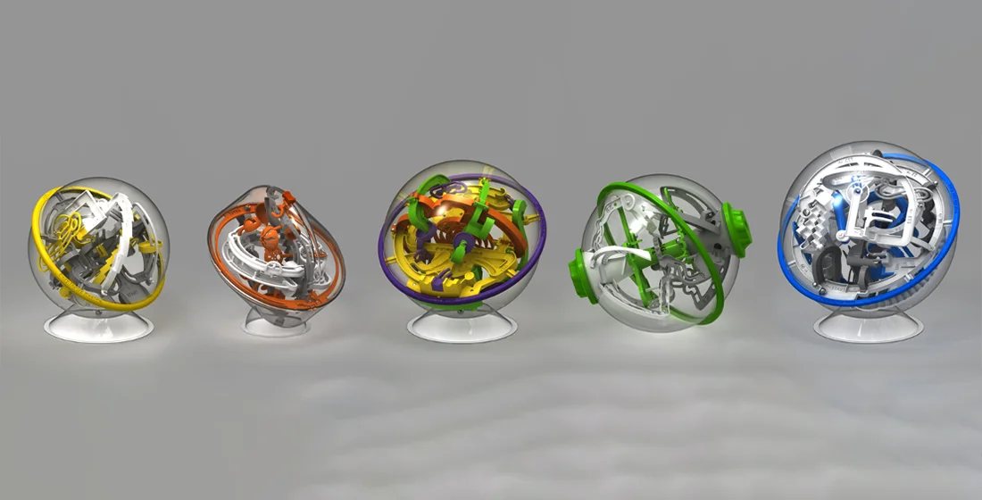 The award-winning Perplexus series is a set of complex, 3-dimensional labyrinths that can be traced by a ball bearing. Learning to play takes no time at all. They can be universally understood; there is no language barrier, no parts to lose, and only one very simple rule – don’t fall off the track! Each game offers unique challenges and aesthetic form. They go from easy to very challenging, and the line is in continuous evolution.
